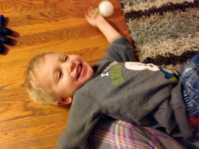 My friend Michelle heard about Henry's repeated destruction of our Christmas ornaments, so she gave me some adorable "guaranteed to be shatterproof" ornaments. Henry tried very, very hard to disprove the guarantee.