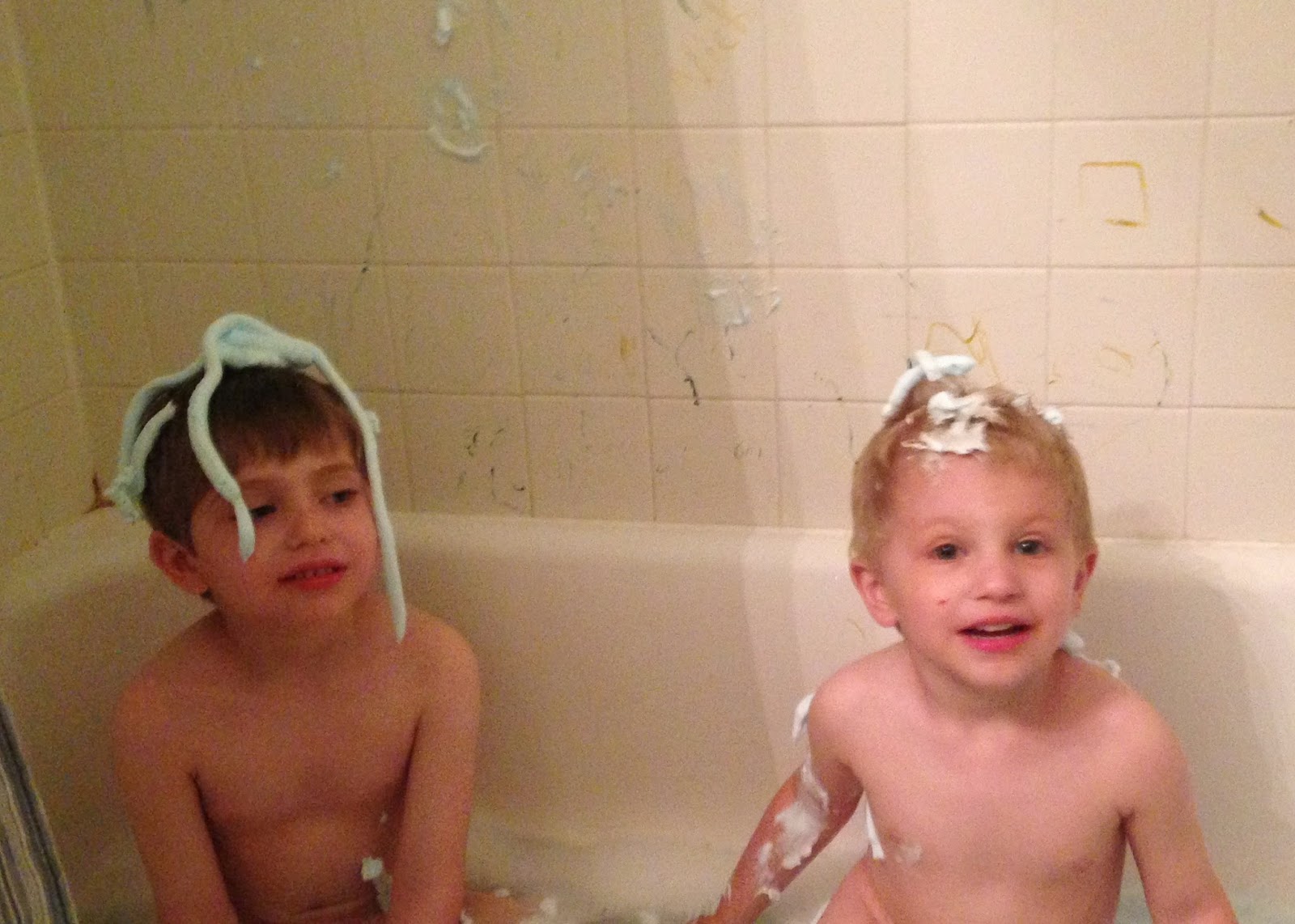I really wish we had a fence. At my mom's house, we could just sit and watch the boys run around and play with little effort expended on safety. At home, I feel like we're always dealing with one kid running too far (toward the pond or the street) or somebody sneaking into the garage and bringing out something random.